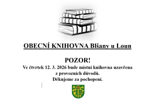 Ve čtvrtek 12. března 2026 bude místní knihovna v Blšanech u Loun uzavřena.