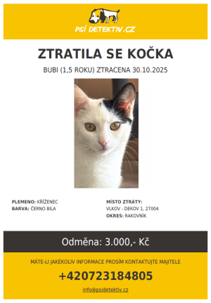 Ztráta kočky v obci Vlkov-Dekov