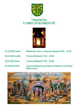 Obecní úřad bude od 22. prosince 2025 do 2. ledna 2026 uzavřen.
