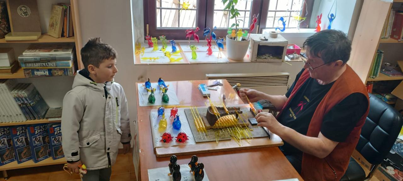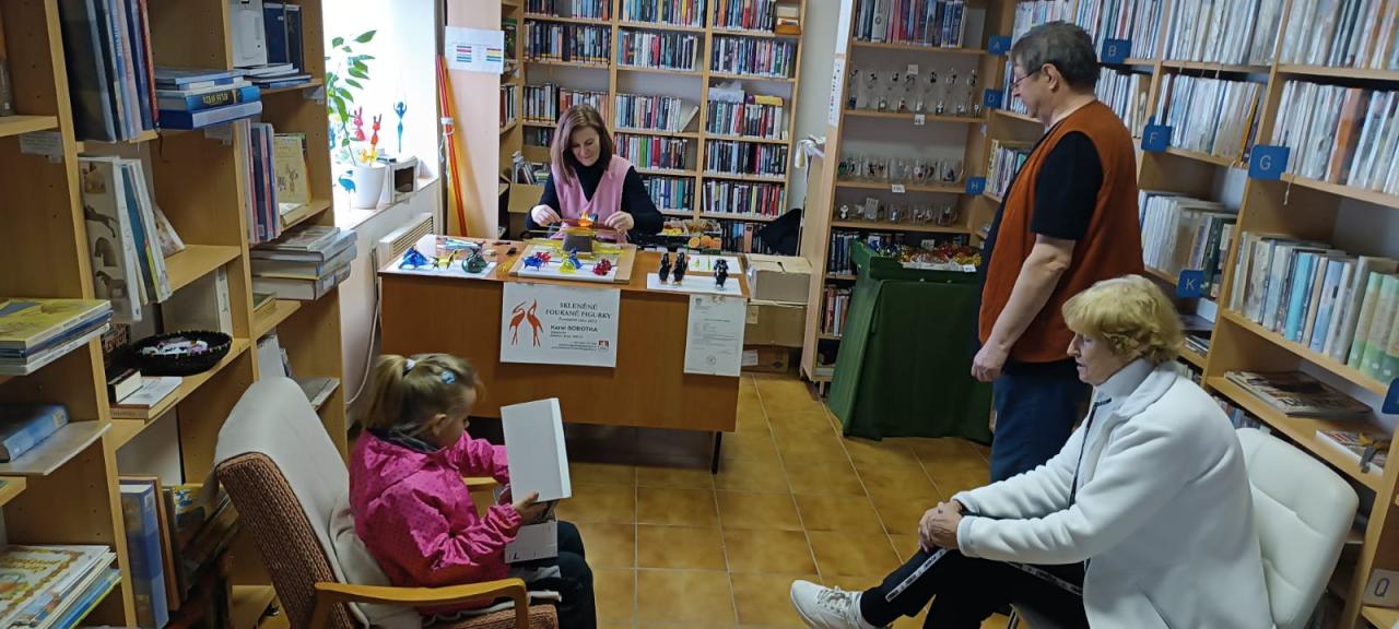 Velikonoční foukání se sklářem panem Sobotkou a velikonoční výstava zástěr v knihovně 30.3.2025